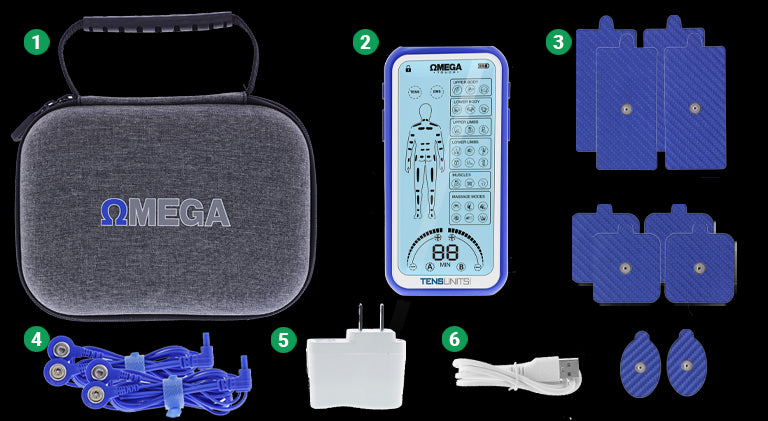 What is included with the Omega Touch Pro TENS Unit?